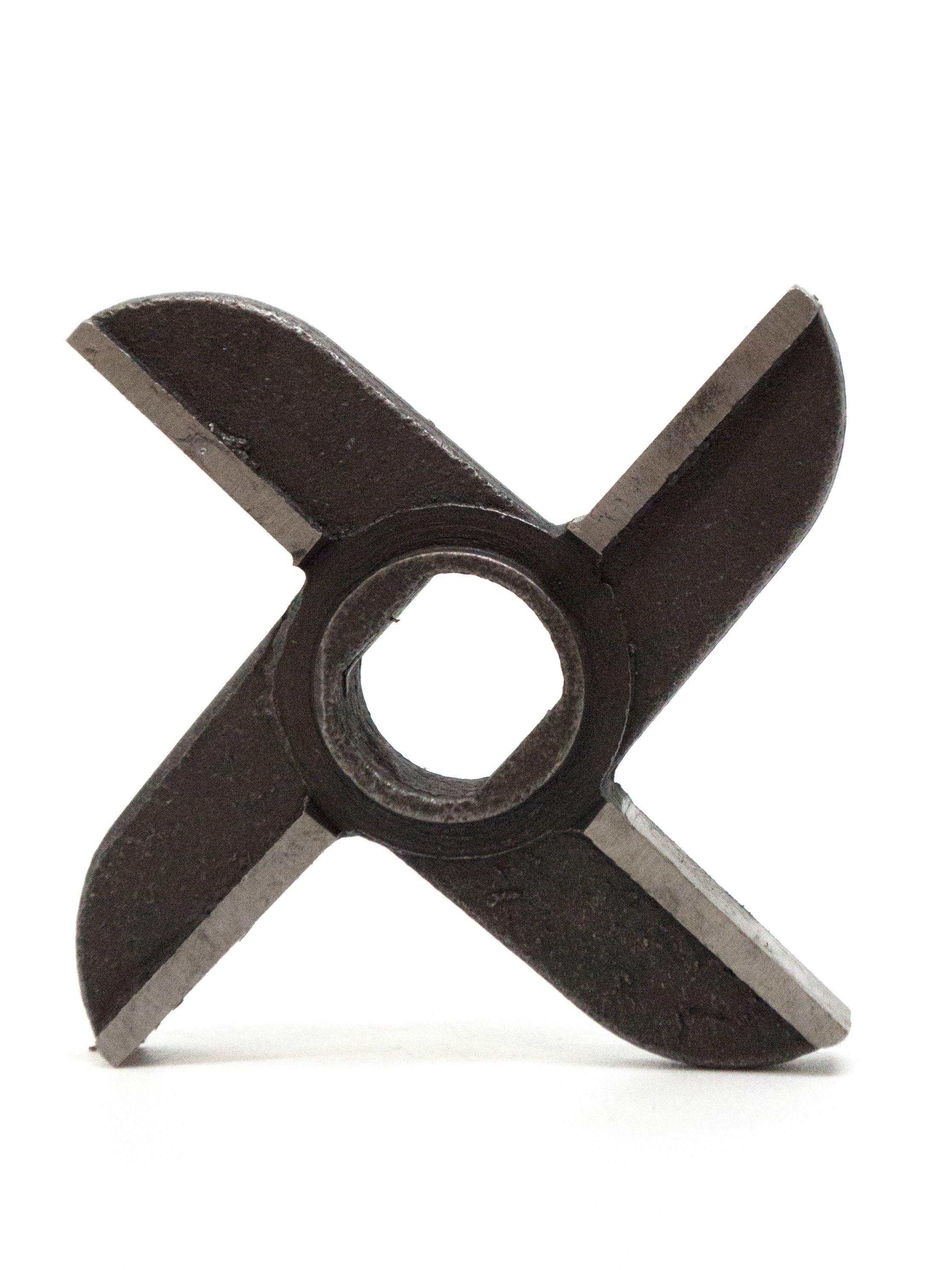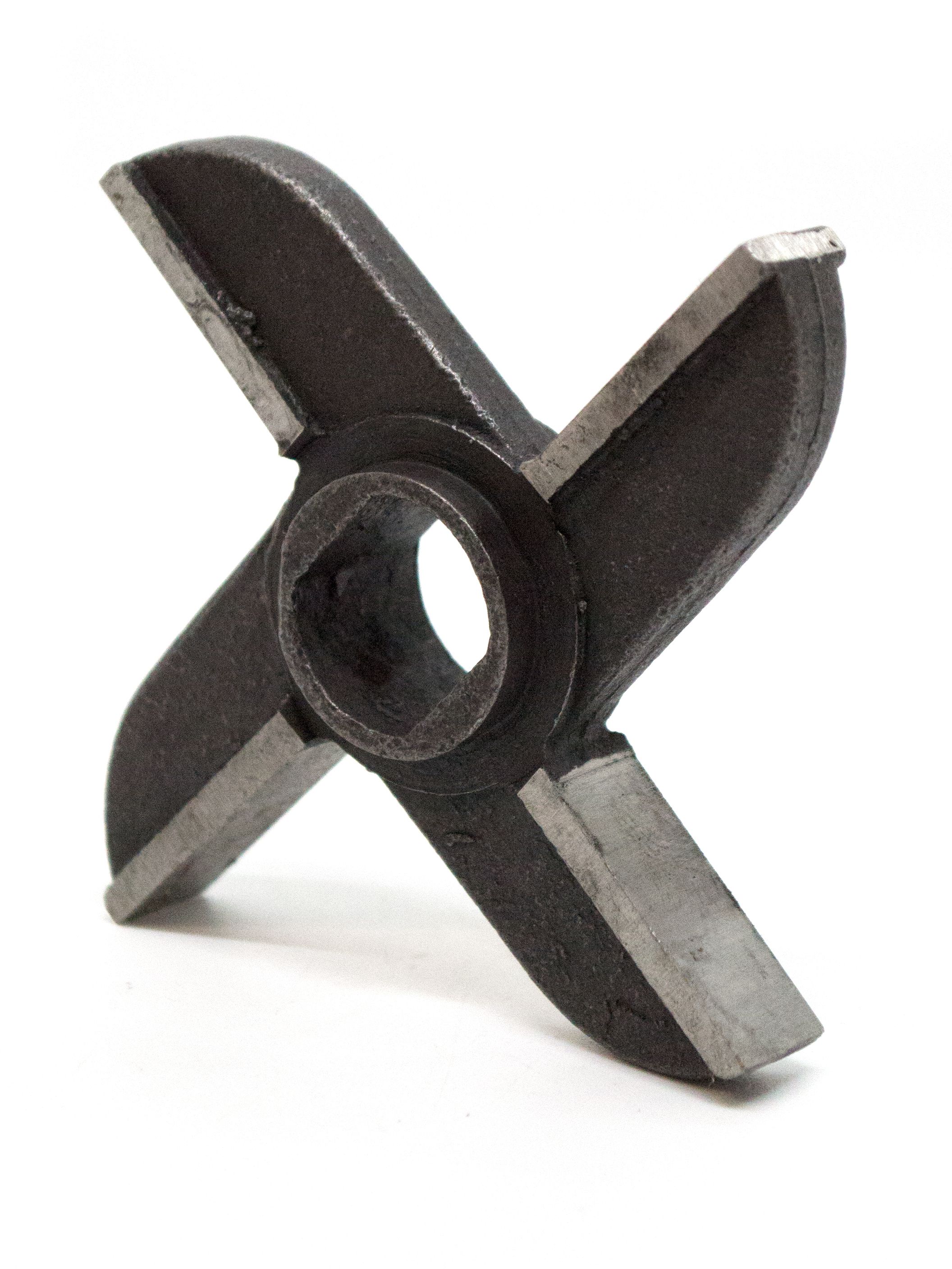 Литой двухсторонний крестовой нож с буртом для промышленных мясорубок МИМ-600, МИМ-600М, МИМ-500, М-600 (УКМ) и другим с наружным диаметром решеток 105 мм. Оригинальный код производителя - МИМ-600.01.004.