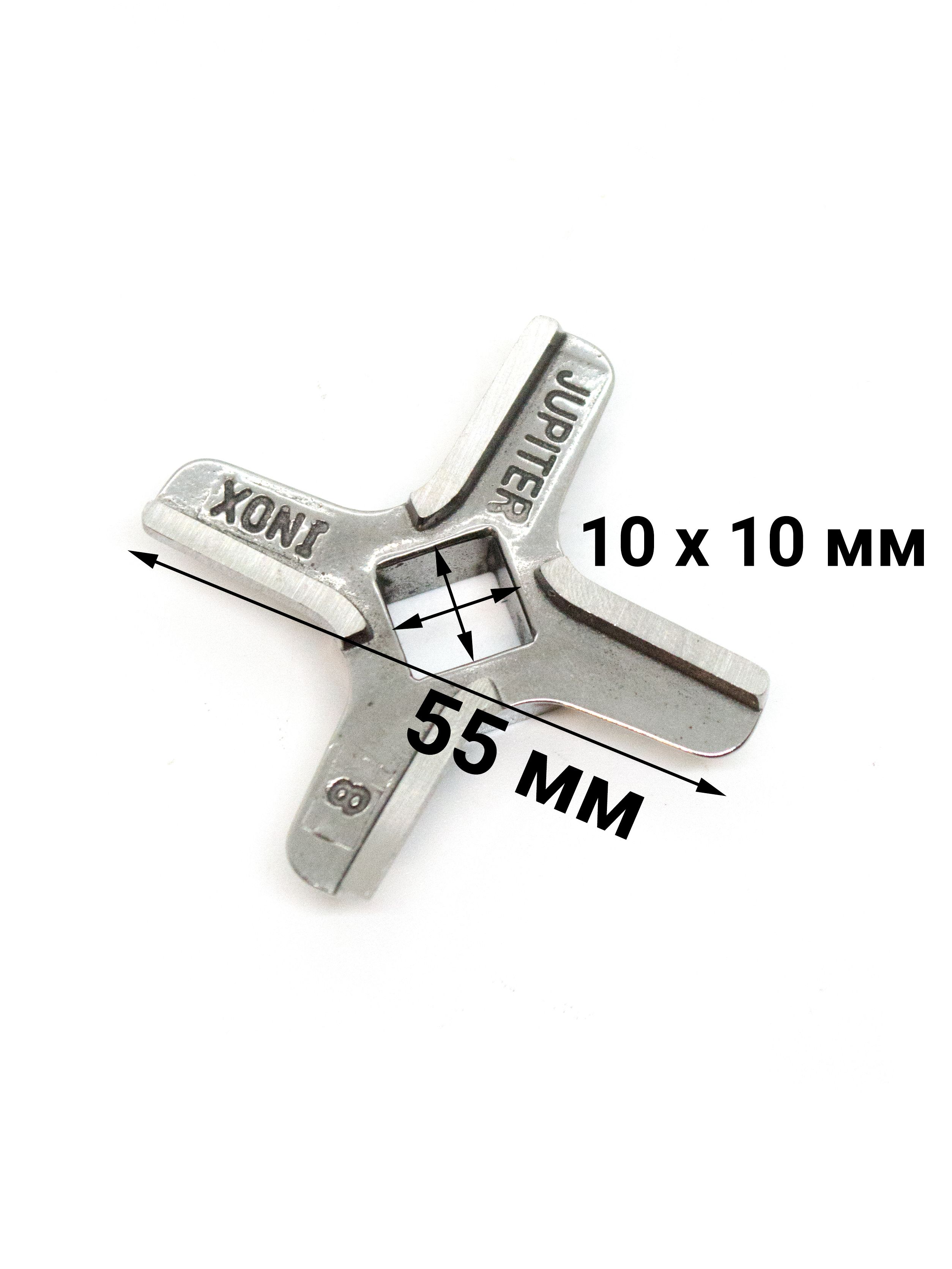 Нож 4-х лопастной для мясорубок Bosch: MFW66020, MFW67440, MFW67600, MFW68640, MFW68660, MFW68680. Размеры: диаметр 55,5 мм, толщина 9,8 мм, под решетку диаметром 62 мм, посадочное место ножа на шнек 10х10 мм. Код производителя - 629851 (аналог).
