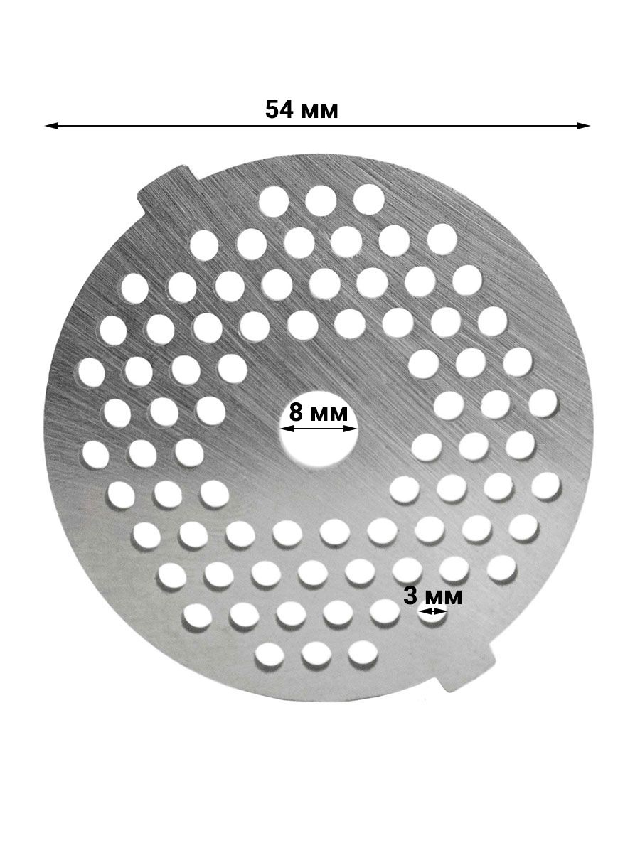 Основные характеристики:Материал нержавеющая сталь Наружный диаметр решетки 54 мм Диаметр отверстий 3 мм Внутренний посадочный диаметр 8 мм Толщина 4 мм